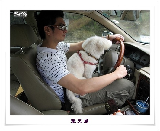 我一下車,寶寶就跑到大呆身上,好像是他在開車似的~